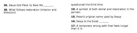 New Fun Activity: Crossword Puzzle to Review Sermon- Transform: Do You Love Me?